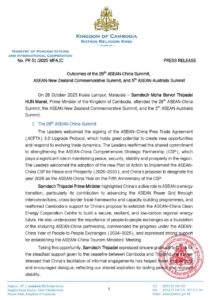 លទ្ធផលនៃកិច្ចប្រជុំកំពូលអាស៊ាន-ចិនលើកទី២៨ កិច្ចប្រជុំកំពូលរំឭកខួបអនុស្សាវរីយ៍អាស៊ាន-នូវែលសេឡង់ និងកិច្ចប្រជុំកំពូលអាស៊ាន-អូស្ត្រាលីលើកទី៥
