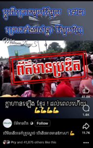 បើតាមលោក ស៊ុន មេសា ម្ចាស់ហ្វេសប៊ុកផេក ព័ត៌មានពិត កំពុងយករូបភាពសកម្មភាពកម្មករទៅកាត់តច្នៃប្រឌិតក្នុងចេតនាញុះញង់ប្រជាពលរដ្ឋតាមរយៈបណ្តាញសង្គមឱ្យងើបឡើងបះបោរ ផ្តួលរំលំរាជរដ្ឋាភិបាលស្របច្បាប់ និងកៀរគរប្រជាពលរដ្ឋឱ្យធ្វើសកម្មភាពផ្សេងៗផ្ទុយនឹងច្បាប់។ លោកបន្តថា នេះជារឿងអគុណធម៌បំផុត ដែលម្ចាស់ហ្វេសប៊ុកផេកមួយនេះខំប្រឹងមួលបង្កាច់ លាបពណ៌ ទម្លាក់កំហុសគ្រប់បែបយ៉ាងមកលើរាជរដ្ឋាភិបាល៕